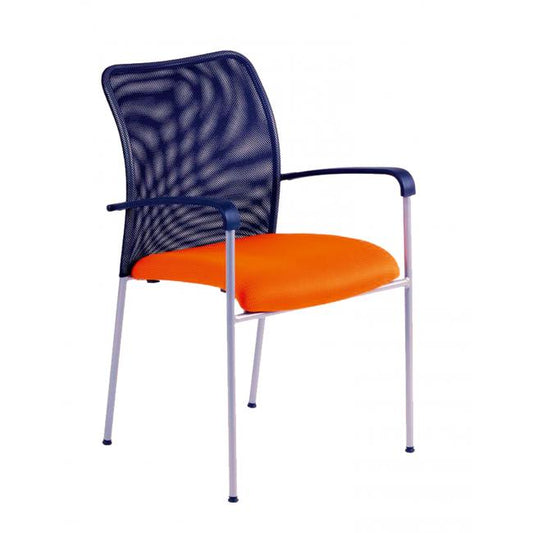 Rokovacia čalúnená stolička v modernom dizajne, stohovateľná. Sivý oceľový rám, operadlo čalúnené samonosnou sieťovinou, nosnosť...