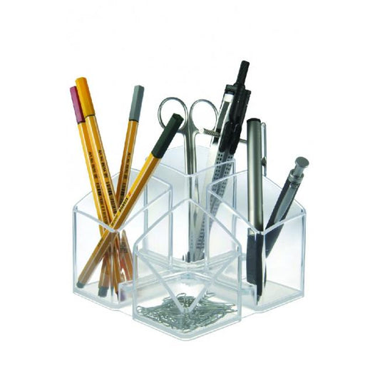 Stojan so štyrmi oddielmi na perá, ceruzky a kancelárske drobnosti z plastu v ekonomickom prevedení....