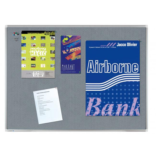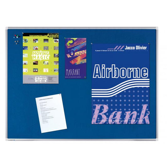 Tabuľa s filcovým povrchom. Hlinikový rám zaistí dlhodobú životnosť. Dodávané s montážnymi prvkami.