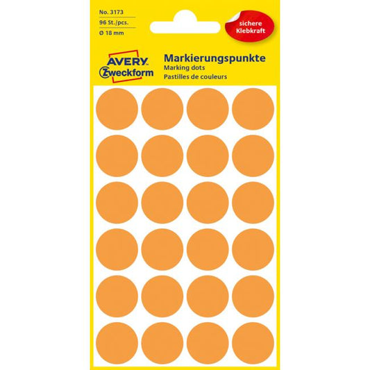 Kruhové etikety na ručný popis. Priemer 18 mm, v balení 96 etikiet. Farba neónová oranžová.