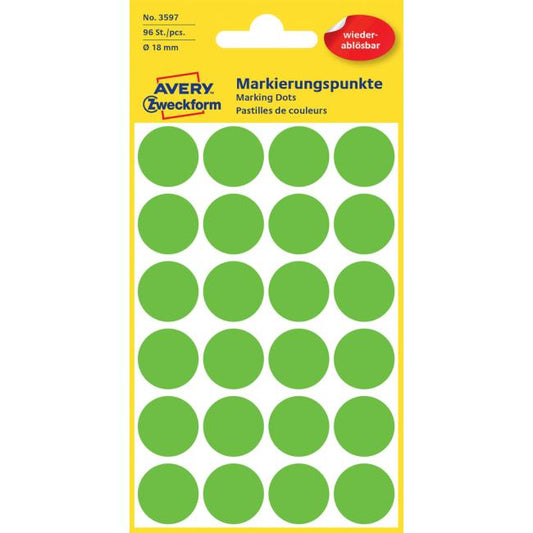 Kruhové etikety na ručný popis. Priemer 8 mm. Farba neónová zelená. Etikety v balení :...