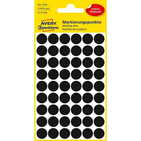Kruhové etikety na ručný popis. Priemer 12 mm, v balení 270 etikiet. Farba čierna.
