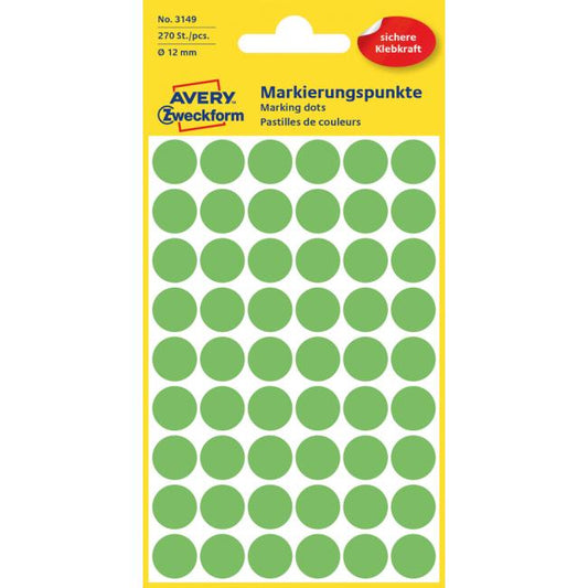 Kruhové etikety na ručný popis. Priemer 12 mm, v balení 270 etikiet. Farba zelená.