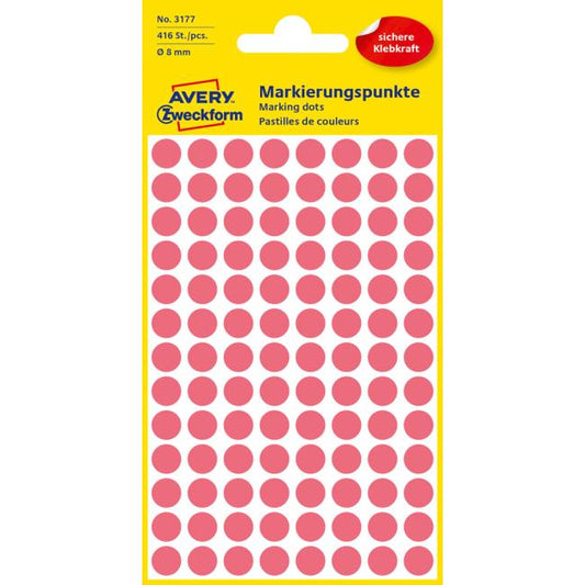 Kruhové etikety na ručný popis. Priemer 8 mm. Farba červená. Etikety v balení : 416...