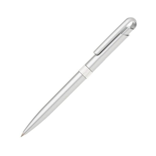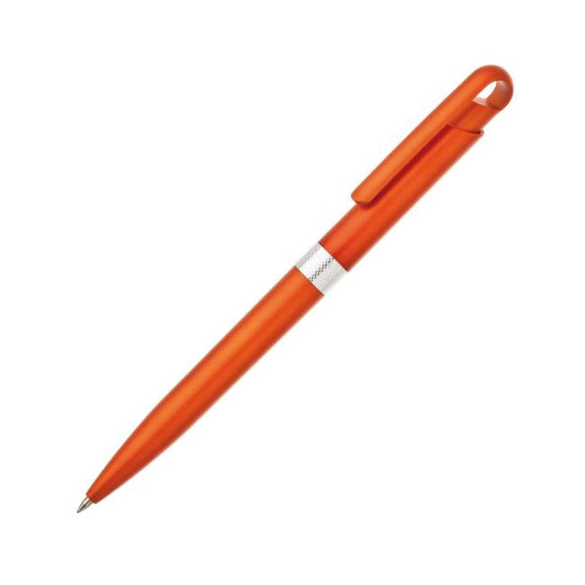 Plastové guľôčkové pero FIROL v metalických farbách. Uprostred pera je stieborný krúžok. Modrá náplň veľkoobjemová....