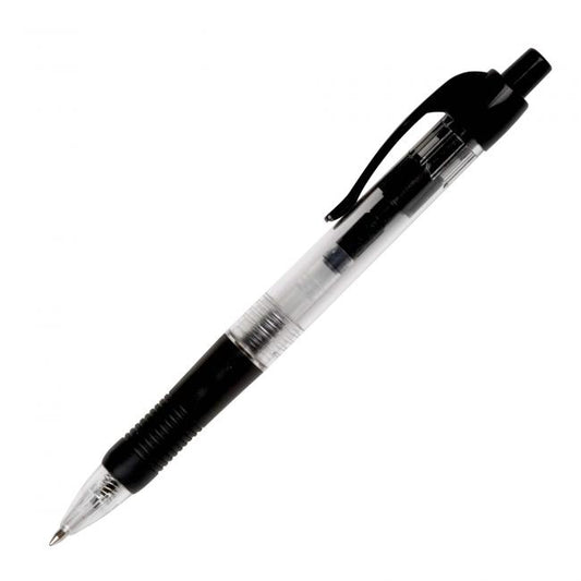 Klikací roller s robustnejším transparentným telom a gumeným úchytom. Farba tela vo farbe náplne. Guľôčka...