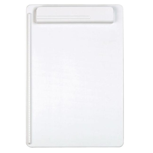 Pevná písacia podložka A4 z tvrdého plastu s kovovým klipom a kalkulačkou, umiestnenou na klipe.