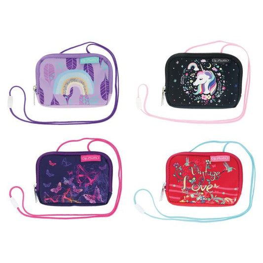 Taštička na krk Herlitz 14,5x10,5x2cm mix Pierka, Motýle, Jednorožec a KvetyTaštička na krk pre dievčatá,...