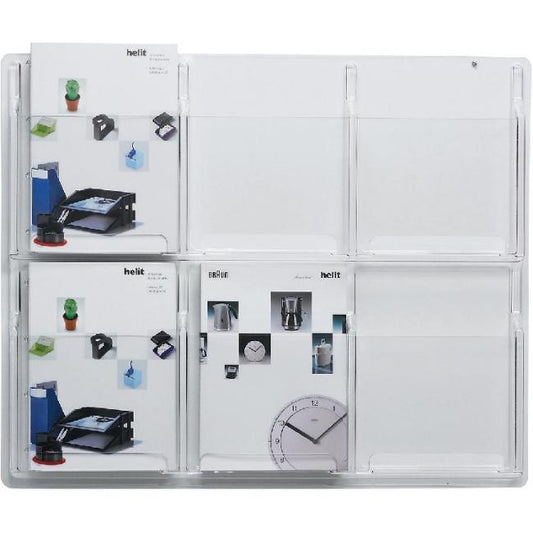 Priehľadný displej na stenu so šiestimi odkladačmi formátu A4. Hĺbka odkladačov 45 mm. Rozmery (š...