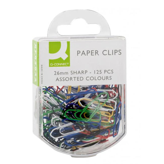 Q-Connect spony na papier so striekanou farebnou úpravou. Dodávané v plastovej krabičke v mixe farieb....