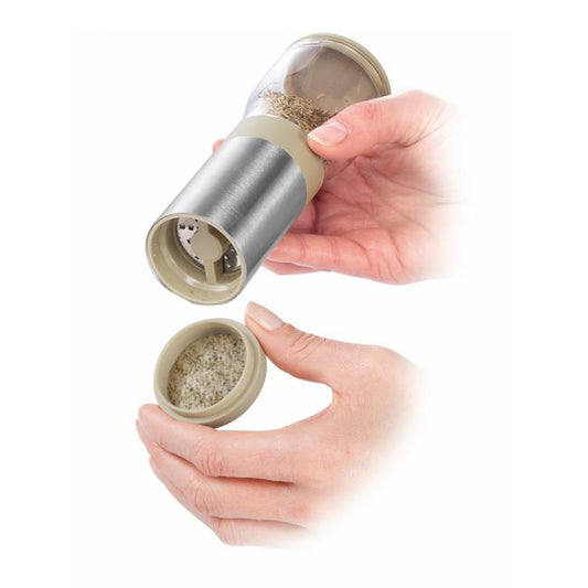 Moderný ručný mlynček na bylinky z prvotriednej nehrdzavejúcej ocele a odolného plastu na dochucovanie pokrmov...