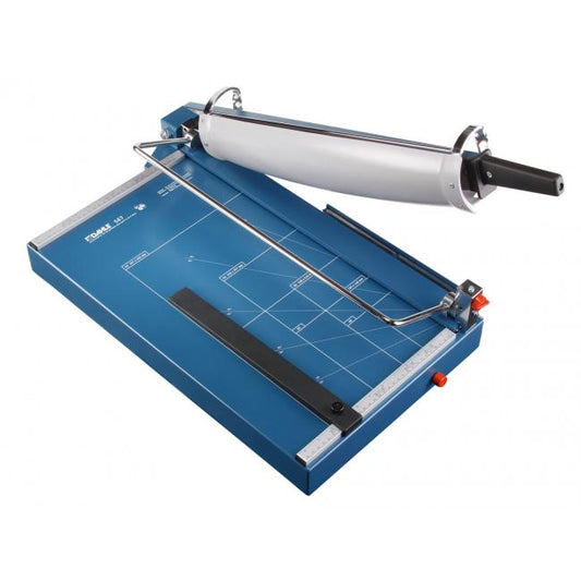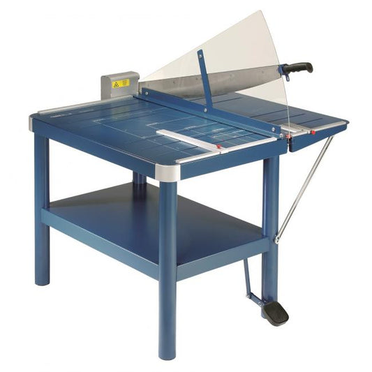 Veľká kovová robustná páková rezačka s vlastným stojanom a uzamykateľným nožom. Brúsený vrchný a spodný nôž z kvalitnej nožiarskej...