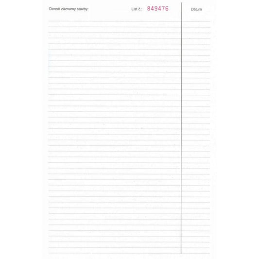 Stavebné tlačivo. Stavebný denník, samoprepis, číslovaný, A4, kniha, 83 listov.