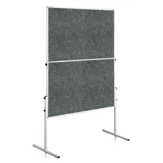 Model skladacej moderačnej tabule bez koliesok. Stojan dodáva tabuli stabilitu, H-profil zaručuje, že obe polovice...