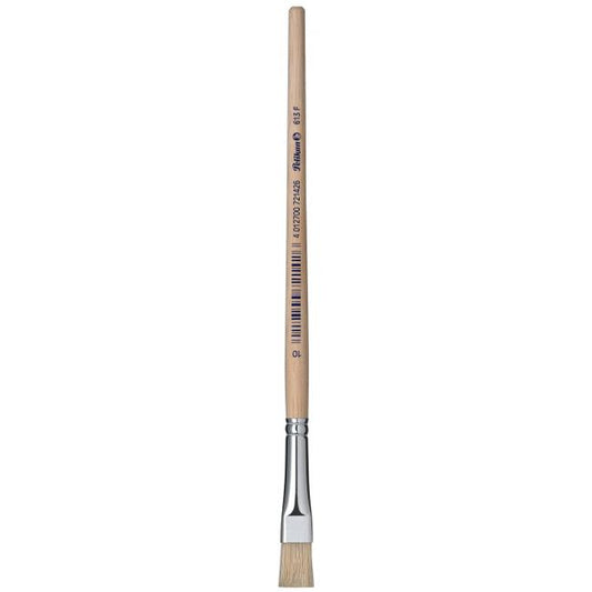 Plochý štetec s krátkymi štetinami. Drevená rukoväť lakovaná bezfarebným lakom a hliníkovým úchytom, s hrúbkou...