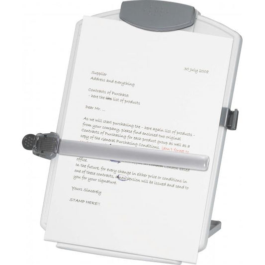 Držiak s posuvným pravítkom na uchytenie cca 10 listov papiera, farba sivá.