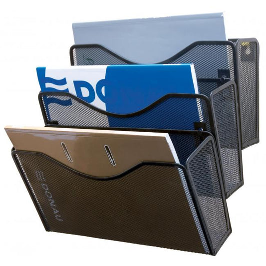 Stojan na stenu s 3 odkladačmi na časopisy a dokumenty do formátu A4+ v drôtenej úprave. Rozmery (š×v×h) 325×330×230 mm.Farba: čierna