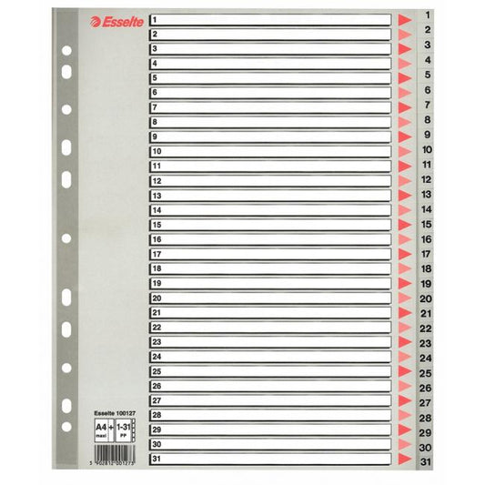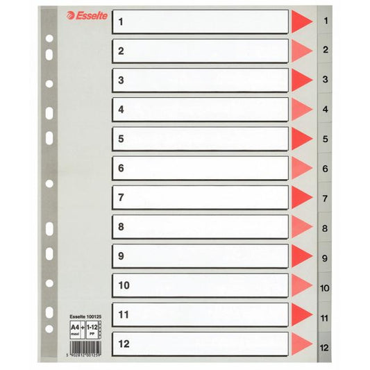 Číselný rozraďovač z polypropylénu. Eurodierovanie, popisovateľný kartónový titulný list na ľahkú orientáciu v dokumentoch. Formát A4 maxi rozmerov...