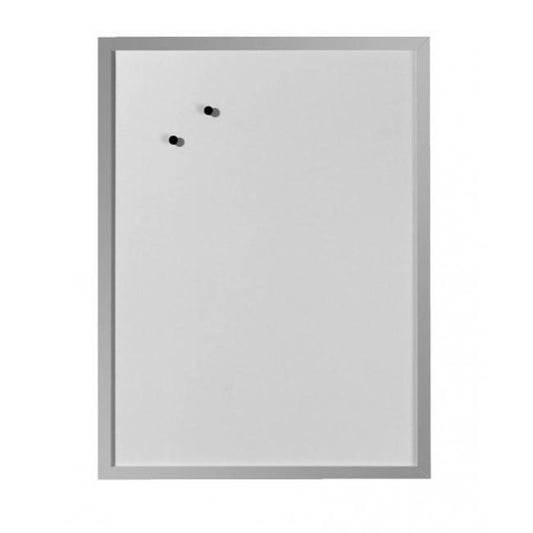 Biela magnetická popisovateľná tabuľa so sivým dreveným rámom. Rozmery: 40x60 cm. Úprava: magnetická.