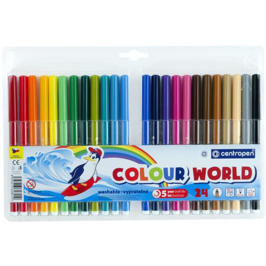 Farebné popisovače, ERGO držanie, zdraviu neškodlivý atrament, odolávajú vyschnutiu až 5 rokov, vyprateľné, ventilačný vrchnák...
