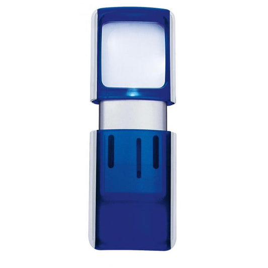 Lupa s podsvietením. Veľkosť cca 35×38 mm, 3-násobné zväčšenie. 2 batérie 3V sú súčasťou balenia.Farba: modrá