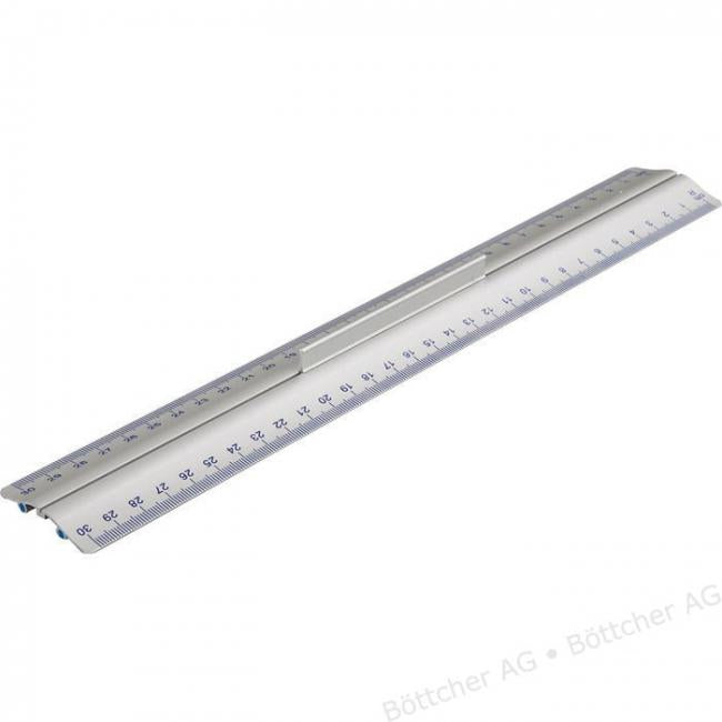 Pravítko vyrobené z eloxovaného hliníka. Metrické značenie v cm/ mm. Obojstranná oderuvzdorná stupnica mierky v modrej farbe. Dva protišmykové pásiky na spodnej strane, rukoväť pre lepšie držanie. Vhodné pre pravákov aj ľavákov. Šírka 4,5 cm.