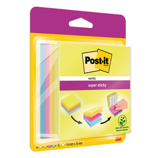 - Post-it® kocka silne lepiacich bločkov sa v porovnaní s originálnymi Post-it® bločkami vyznačuje 2 x vyššou priľnavosťou. Bločky sa hodia na zvislé a zle lepivé povrchy.
