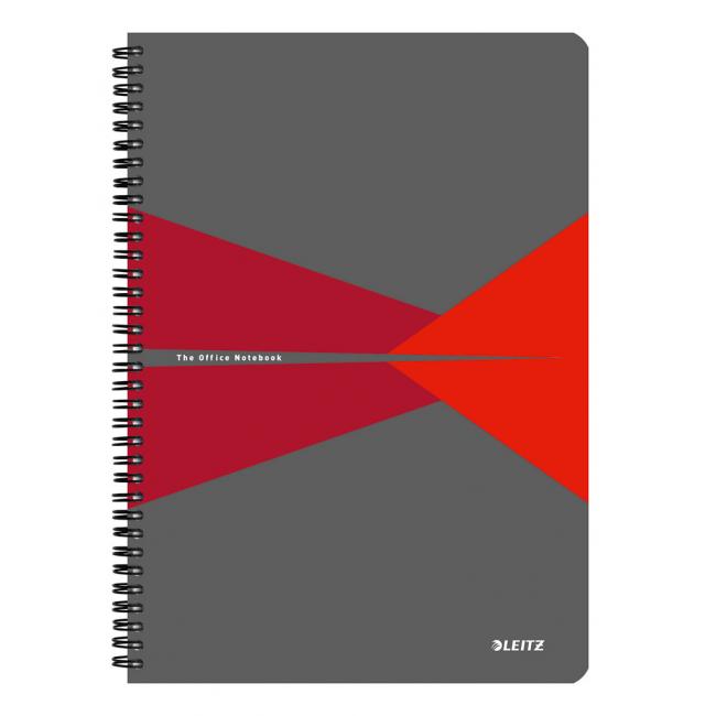 Kvalitný krúžkový blok s bočnou špirálou formátu A5 s mäkkými doskami z kartónu s laminovaným povrchom, vo vnútri biely papier s hmotnosťou 90 g/m2, dvojitá drôtená väzba umožňuje otočenie stránok o 360°, vyberateľné pravítko môže slúžiť ako záložka. Farba červená.