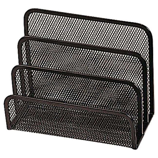 Stojan na listy s tromi priehradkami v drôtenej úprave. Rozmery (š×v×h) 170×135×83 mm.
