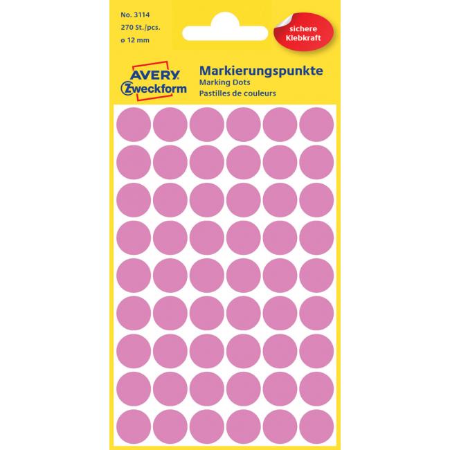 Kruhové etikety na ručný popis. Priemer 12 mm, v balení 270 etikiet. Farba ružová.