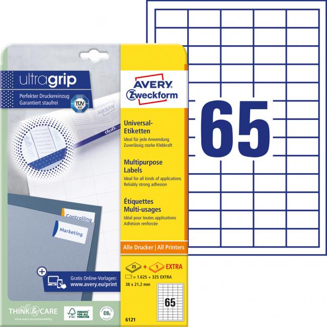 Biele univerzálne etikety vhodné na každodenné použitie v atramentových a laserových tlačiarňach a kopírovacích strojoch. Vďaka inovatívnej technológie ultragrip sa môžete spoľahnúť na bezchybné natiahnutie archu a tlač bez zasekávania. Bezpečnostný okraj QCT zabraňuje zanášaniu tlačiarne lepidlom. Pre laserové tlačiarne testované