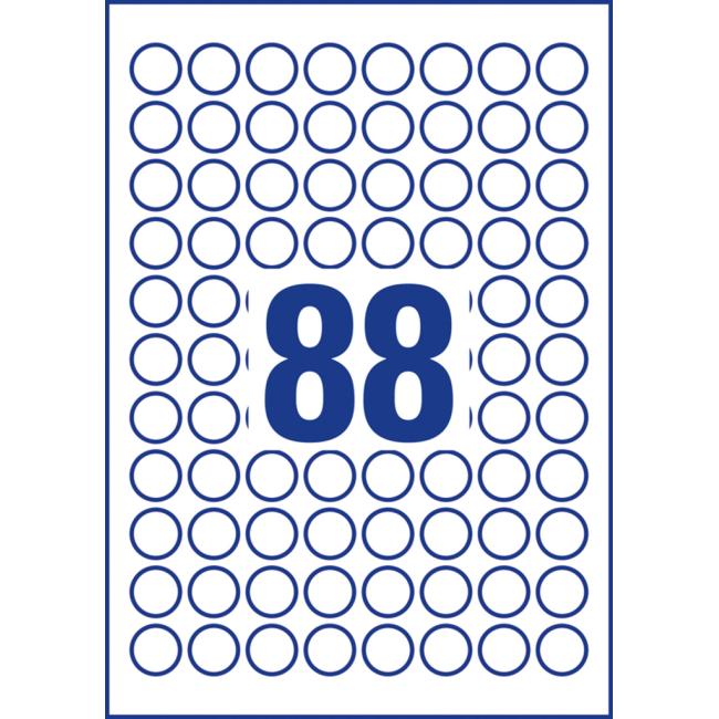 Etikety univerzálne kruhové 20mm Avery A4 10 hárkov