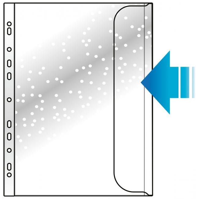 Priehľadné matné obaly s eurodierovaním a chlopňou. Šírka obalu aj s dierováním je 23,5 cm. Formát A4. Balené v sáčku.