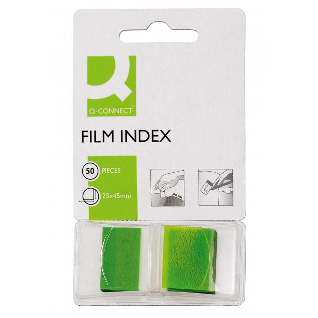 Indexové fóliové lístky, popisovateľné a snímateľné. Rozmery 25 × 43 mm. V balení 50 lístkov. Farba zelená.