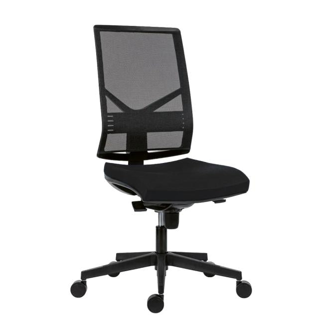 Kancelárska stolička, operadlo so sieťovinou a výškovo nastaviteľnou bedrovou výstuhou.