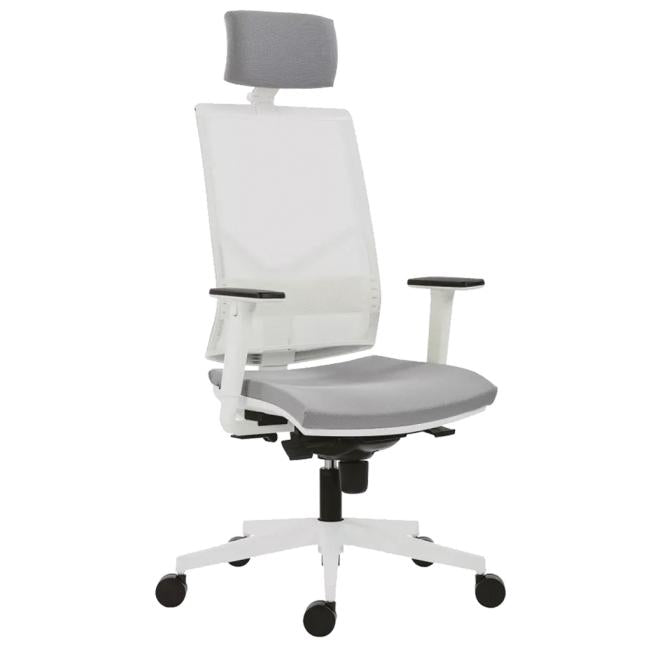 Kancelárska stolička s výškovo a uhlovo nastaviteľným podhlavníkom - PDH, operadlo so sieťovinou a výškovo nastav. bedrovou výstuhou.
