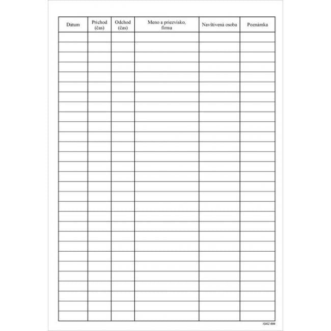 Tlačivo : Kniha návštev A4. Väzba tvrdá, počet listov 96.