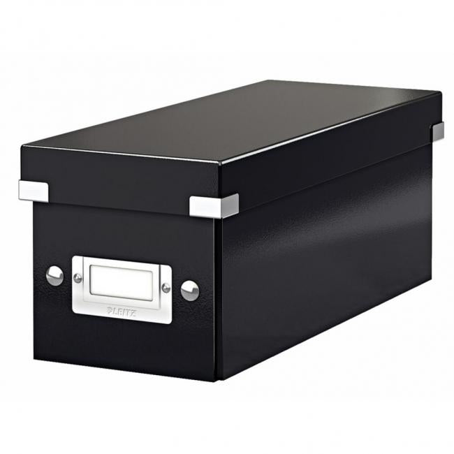 Multifunkčná atraktívna archivačná krabica vo výrazných farbách WOW vhodná na použitie v kancelárii i v domácnosti. CD alebo DVD v klasických plastových obaloch. Pevné a stabilné prevedenie. Materiál silný drevnatý kartón potiahnutý laminom. Úchyty, miesto na štítok, vystužené rohy krabice a spojovacie cvoky vyrobené z kovu. Krabica dodávaná rozložená. Veľmi skladná pri nepoužívaní. Rozmery 143 × 352 × 136 mm. Väčšie balenie 6 ks. Farba čierna.