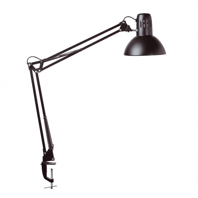 Lampa v klasickom dizajne s variabilným nastavením a robustnou svorkou s upevnením na hranu stola do výšky 5,5 cm, s garanciou bez spotreby energie pri vypnutí. Profesionálna lampa s vysokou kvalitou osvetlenia vhodná na pracovisko i do domácnosti. Kovové rameno hlavica s rotáciou o 360 stupňov s možnosťou sklopenia o 130 stupňov. Dĺžka ramien 35 cm, výška normálnej pracovnej pozície 51 cm, priemer hlvice 17 cm. Vypínač umiestnený na kábli. Dĺžka kábla cca 1,75 m. Dodávaná bez žiarivky. Možnosť použitia úspornej žiarivky E27 v energetickej triede „A+“ až „B“. Farba čierna.