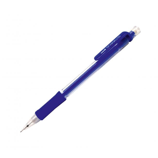 Mikroceruzka s plastovým telom, gumeným úchytom, klipom a gumou. Zasúvací hrot, tuha HB hrúbky 0,5 mm. Väčšie balenie 12 ks v jednej farbe. Hrúbka tuhy 0,5 mm. Farba tela modrá.