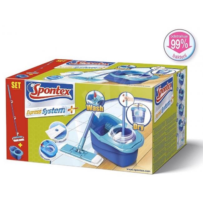 Spontex Mop Express System+ prichádza s vylepšenou technológiou žmýkania. Umývanie podlahy sa tak pre vás stane doslova drogou. Unikátna mriežka na stranách vedra umožňuje odstrániť hrubú špinu. Návlek z mikrovlákna dobre absorbuje vlhkosť a zachytí tak všetku nečistotu. Obrovskou výhodou je použitie mopu bez ďalších nutných prípravkov. Žmýkací systém je zabudovaný v rukoväti, už nikdy sa tak pomocou tohto mopu nebudete musieť ohýbať. Je vhodný pre všetky typy podláh.