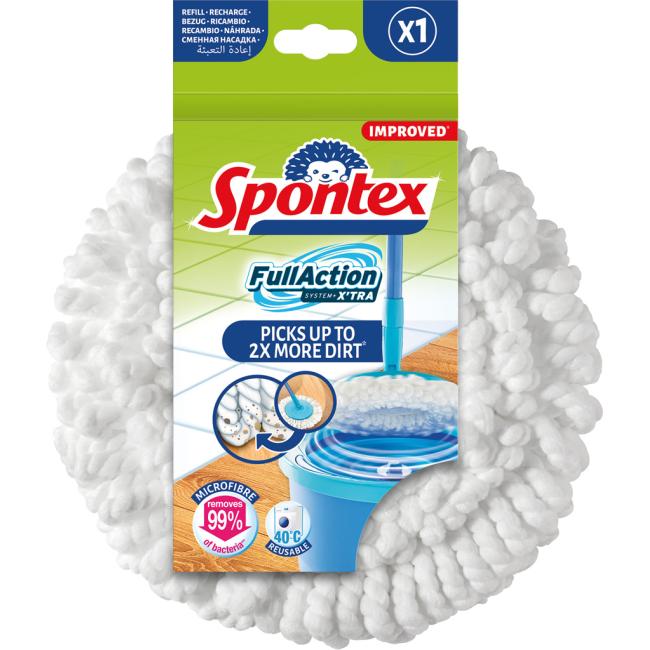 Nová huňatejšia náhrada k mopu Full Action System+ Xtra. Zachytí až dvakrát viac nečistôt ako pôvodná Spontex Full Action System+ náhrada.
