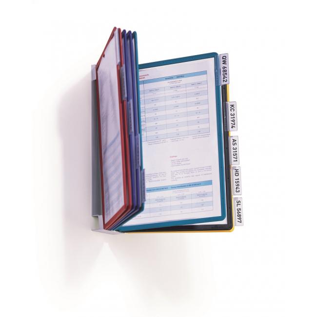 Extrémne pevný držiak na stenu vyrobený z kovovej platne s 10 displejovými polypropylénovými panelmi Sherpa s indexami. Ideálny pre použitie v priemysle, včítane dielní, skladoch, a kuchyniach. Držiak sa ľahko montuje, panely sa do držiaka jednoducho vkladajú a vyberajú. Farby panelov: po 2 ks z čiernej, červenej, žltej, zelenej a tmavomodrej pri 10 paneloch.