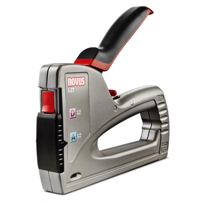 Veľká profesionálna nastreľovačka s ľahkým hliníkovým telom pre rôzne domáce práce, údržbu a dielne. Posuvný mechanizmus na ľahké prepínanie medzi tenkými spinkami a spinkami z plochého drôtu, ergonomická mäkká rukoväť, regulácia sily úderu na manuálne nastavenie podľa daného materiálu, spodný plniaci zásobník s bezpečnostnou poistkou na ľahké plnenie spinkami, zámok rukoväte pre skladovanie, kontrolné okienko na sledovanie stavu naplnenia zásobníka. Kapacita: (A) spinky 140 ks, (D) spinky 80 ks.
