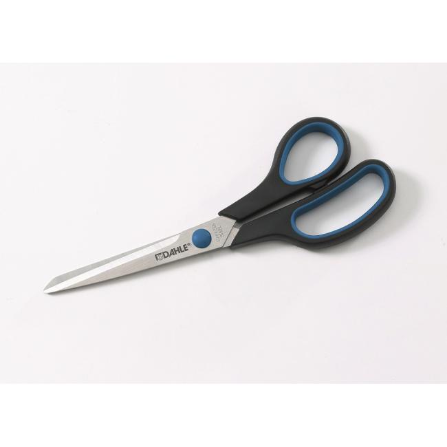 Nožnice perfektne sediace v ruke. Jemný gumený úchyt na komfortné uchytenie prstami, rukoväť z polypropylénu. Farba čierna/modrá.