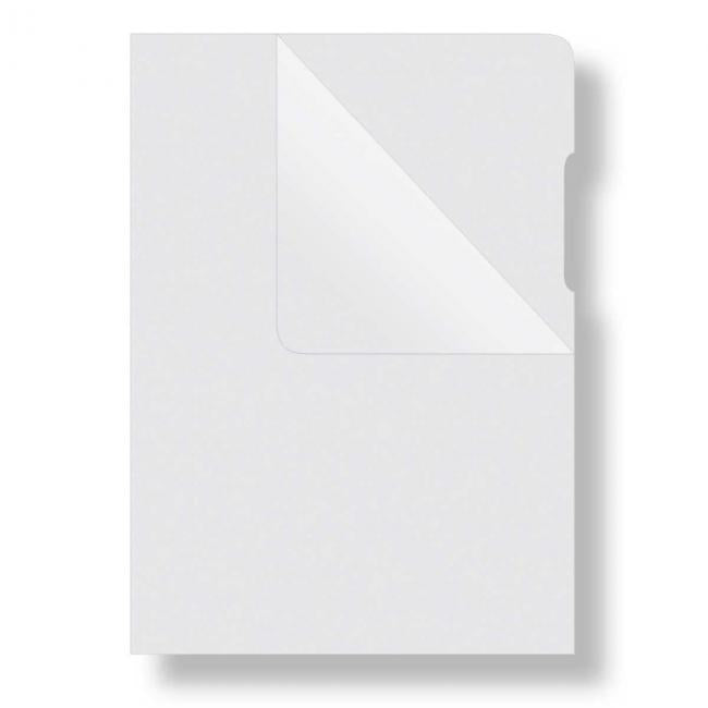 Priehľadný obal na dokumenty z tvrdého polypropylénu. Otvor zhora a po dlhšej strane („L“). Povrch lesklý mliečny, výkroj na ľahšiu manipuláciu, zaoblená horná strana. Formát A4. Balenie 100 ks.