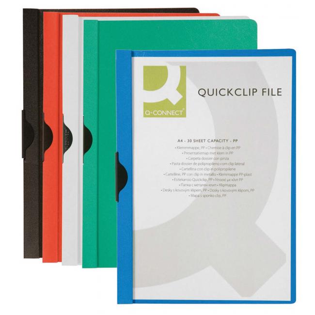 Obal z pevného polypropylénu s priehľadnou prednou stranou a kovovým vyklápacím klipom v čiernej farbe. Formát A4. Kapacita 1 - 30 listov. Väčšie balenie 25 ks. Farba modrá.