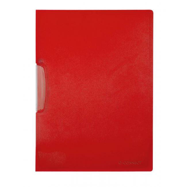Obal z pevného polypropylénu s priehľadnou prednou stranou vo farbe obalu a priehľadným vyklápacím klipom z plastu. Formát A4. Kapacita 1 - 30 listov. Väčšie balenie 25 ks. Farba červený.