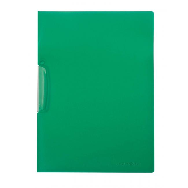 Obal z pevného polypropylénu s priehľadnou prednou stranou vo farbe obalu a priehľadným vyklápacím klipom z plastu. Formát A4. Kapacita 1 - 30 listov. Väčšie balenie 25 ks. Farba zelená.