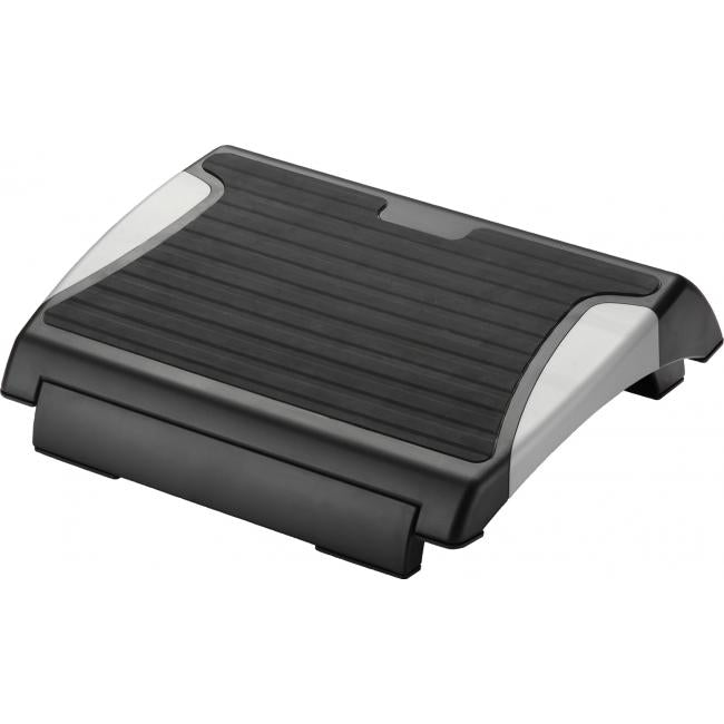 Opierka na nohy Q-Connect z robustného ABS plastu, s protišmykovou gumenou podložkou na hornej plošine. Podpery nôh sa skladajú naplocho pre ľahké nastavenie výšky a skladovanie pod plošinou, (L) 400 x (Š) 350 x (H) 70 mm. Farba: čierna / strieborná.